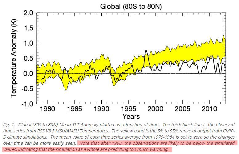 It shows warming 0.52K/century from 1861 to 2014, with a plateau from 2006 to 2014, and 0.91K/century from 1979-2014. It projects 1.0K/century from 2006 to 2035 and 1.35K/century from now to 2101. Those forward projections are much lower than the consensus claims, and not at all alarming
