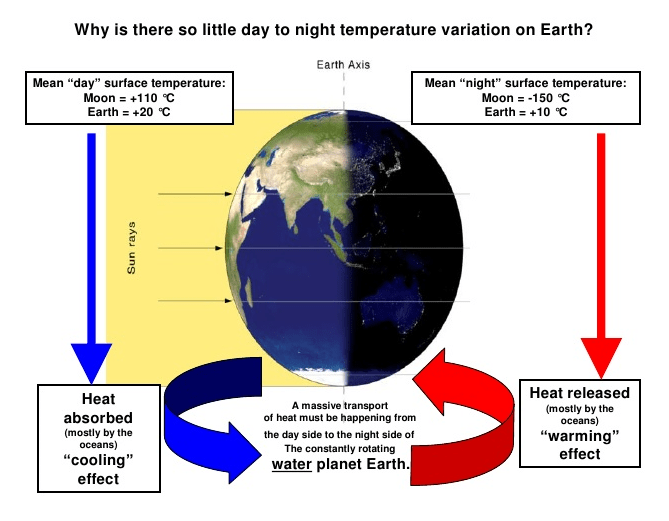So the oceans make rain, and together with the forests the land receives its necessary fresh water. There is a threat from human activity, but it has nothing to do with CO2. Land use practices leading to deforestation have the potential to disrupt this process. Without trees attracting the moist air from the ocean there is desert.