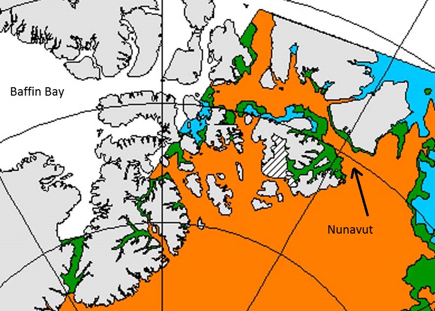 The Polar Ocean Challenge involves the sailing ship Northabout circumnavigating the North Pole counterclockwise starting from Bristol UK. The chart above from MASIE shows the two choke points in the itinerary: The Laptev Wall of ice at the beginning and the Nunavut Gauntlet of ice at the end. The image shows If Northabout can get past Laptev, it is relatively clear sailing all the way to Beaufort where Nunavut awaits.