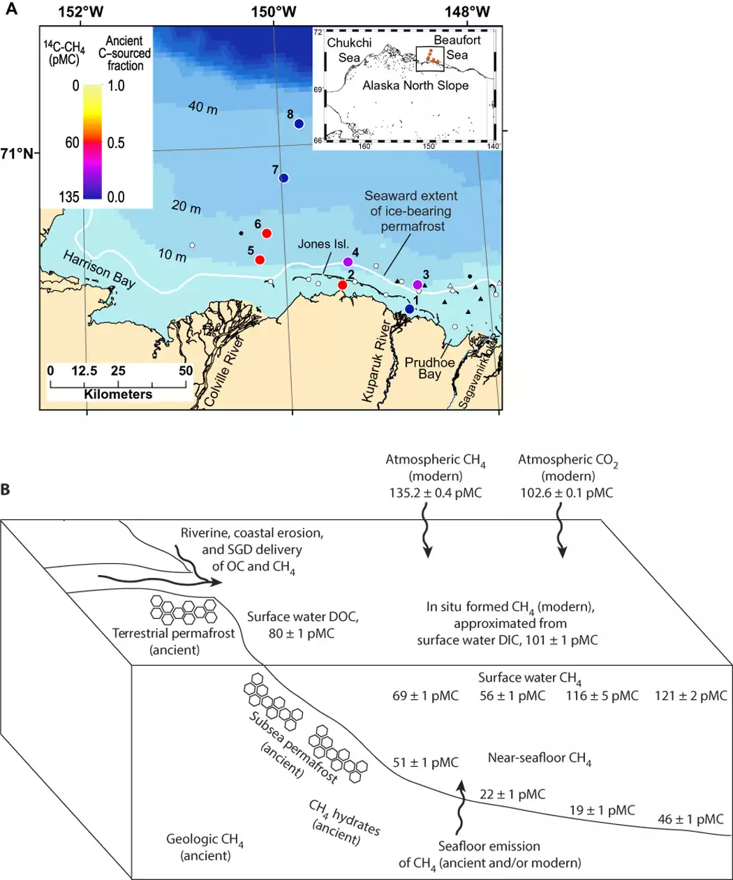 Much of the natural emission of CO2 stems from the decay of organic matter on land, a process that depends strongly on temperature and moisture. And much CO2 is absorbed and released from the oceans, which are estimated to contain about 50 times as much CO2 as the atmosphere. In the oceans CO2 is stored mostly as bicarbonate (HCO3 – ) and carbonate (CO3 – – ) ions. Without the dissolved CO2, the mildly alkaline ocean with a pH of about 8 would be very alkaline with a pH of about 11.3 (like deadly household ammonia) because of the strong natural alkalinity.