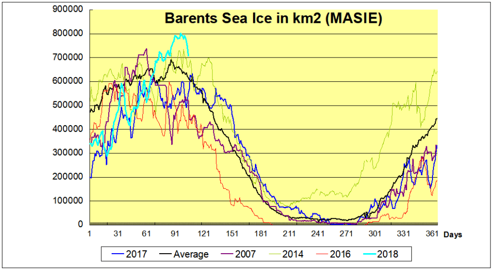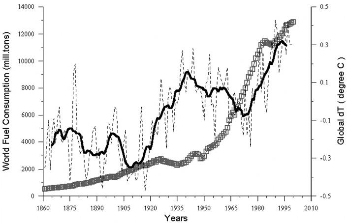 The data is annual averages of absolute SSTs measured in the North Atlantic. The significance of the pulses for weather forecasting is discussed in