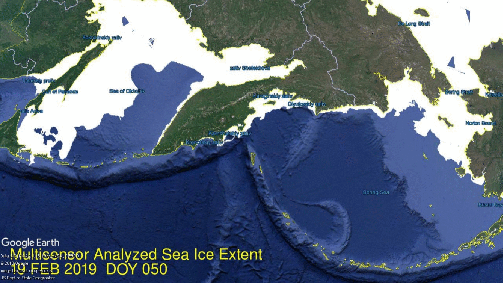 10 Days in Pacific Arctic: The above image shows the pacific ice seesaw returning at the end of February. Bering Sea on the right was at 95% of 2018 maximum and then lost 180k km2 in ten days, now at 65 % of max. Meanwhile on the left Okhotsk Sea gained 70k km2, and is now 106% of 2018 maximum.