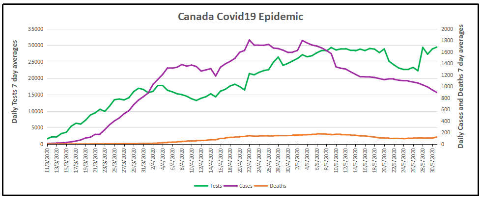 Canada Covid daily 7day ave20200531 Posted on June 1, 2020 by Ron Clutz Trackbacks are closed, but you can post a comment.