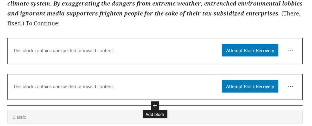 WordPress block warning Posted on January 26, 2021 by Ron Clutz Trackbacks are closed, but you can post a comment.