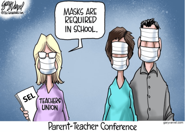 “Social-Emotional Learning supposedly arose out of the COVID-19 pandemic and a need to attend to the emotional psyches of fragile youth. It is a shift in the role of a teacher from an educator to a therapist and places a high value on a child’s emotional competency over academic performance. After locking kids in their homes, isolating them from their peers, muzzling them with ineffective face diapers, and pounding them with fear and doom for 2 years, activists have swooped in to provide emotional support in the classroom once they were permitted to return. In typical government fashion, it seems like a solution looking for a problem. They didn’t create SEL to mend the fragile psyches of youth, they damaged the fragile psyches of youth to push SEL.”