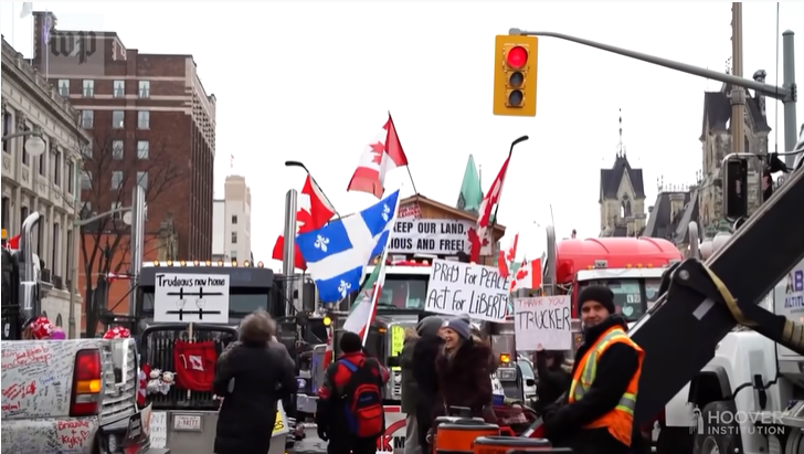PR: All right, question one: The February protest by Canadian truckers. They’re protesting covid restrictions; some of them block border crossings; some of them snarl the capital city of ottawa.