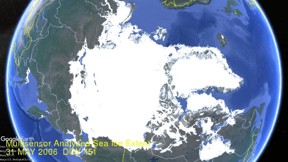Illustration by Eleanor Lutz shows Earth’s seasonal climate changes. If played in full screen, the four corners present views from top, bottom and sides. It is a visual representation of scientific datasets measuring Arctic ice extents.