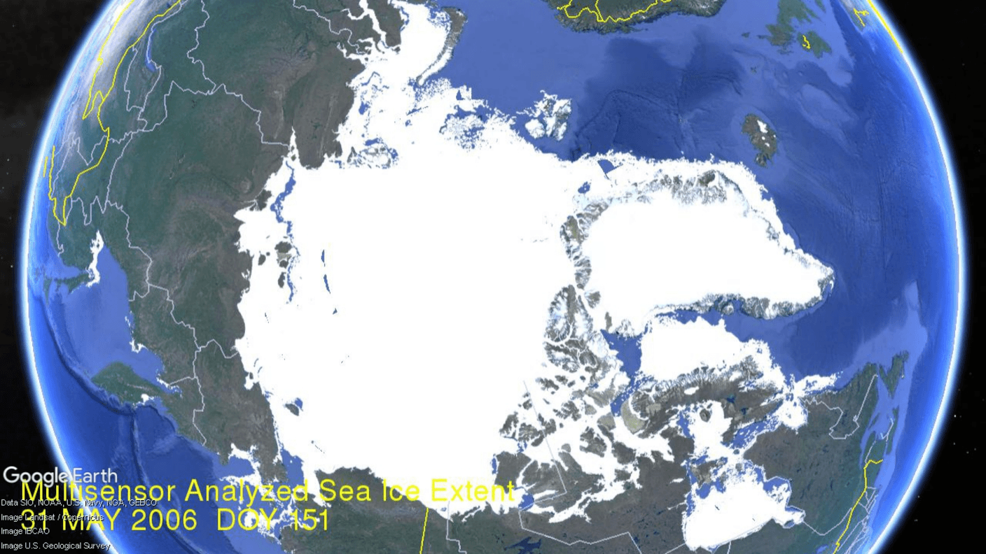 Illustration by Eleanor Lutz shows Earth’s seasonal climate changes. If played in full screen, the four corners present views from top, bottom and sides. It is a visual representation of scientific datasets measuring Arctic ice extents.
