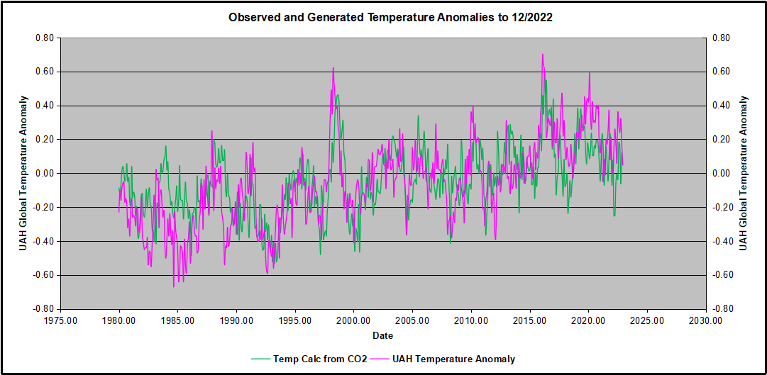 Your figure titled “Observed and Generated CO2 levels to 12/2022” will look exactly the same.