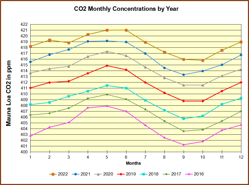 Contrary to claims that rising atmospheric CO2 consists of fossil fuel emissions, consider the Mauna Loa CO2 observations in recent years.