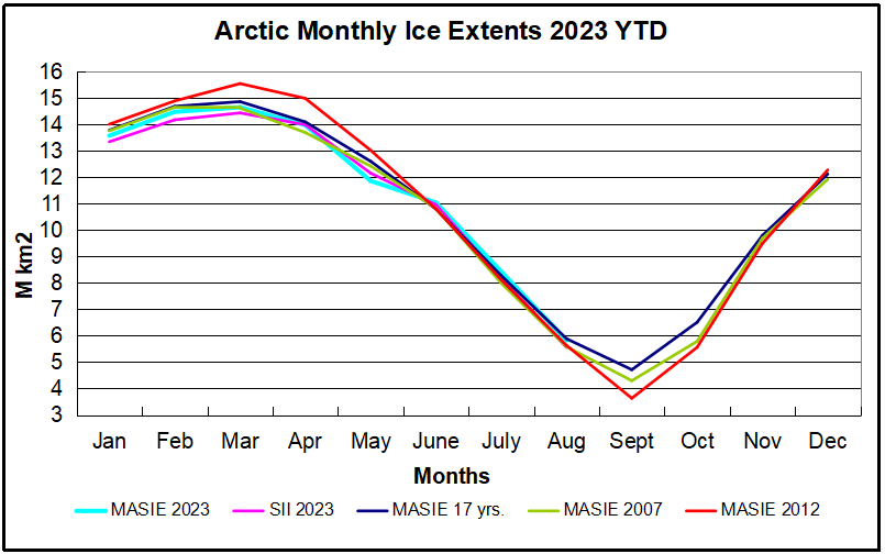 | Monthly | MASIE 2023 | SII 2023 | MASIE -SII | MASIE 2023-17 YR AVE | SII 2023-17 YR AVE | MASIE 2023-2007 |