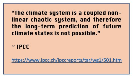 AB: This is the central claim of climate science, but it remains unproven. Chaotic systems are not inherently unpredictable—for example the multibody solar system—and three or more bodies under gravity are chaotic—appears to have remained stable and pretty easy to predict for billions of years.