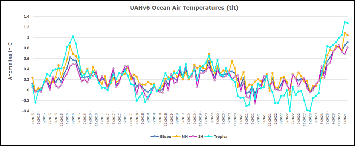 2. Arctic air temperatures have increased during the satellite era (since 1979), but Antarctic temperatures remain essentially stable (Figure 14).