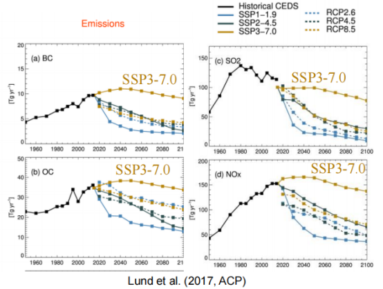 • This distinctive high-aerosol-emission design of SSP3- 7.0 was intended to enable AerChemMIP to investigate the consequences of continued high levels of aerosol emissions on climate.