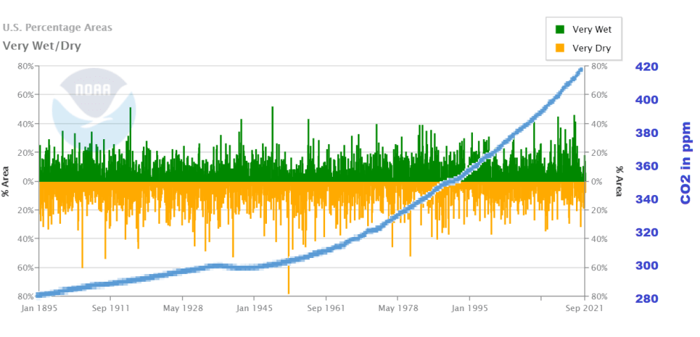 This is again the doomsday litany that rising CO2 will destroy life as we know it. None of the data support that narrative. Just one of many examples of facts vs. fears is the above showing how droughts and flooding have always happened. These events are within the past range of variability and have not increased with rising CO2. Rather than show more such graphs, this video is a brief realistic summary of our climate circumstances.