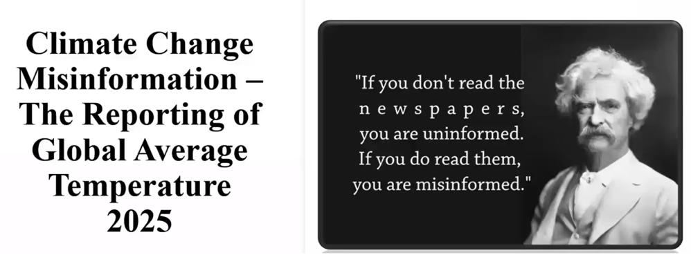 The Distorted Reporting of Global Average Temperature 2025 and its relevance to the Paris Agreement