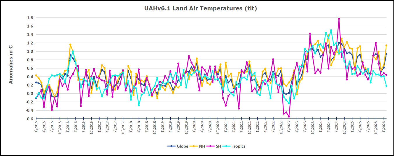 February 2026 UAH Temps: NH Land Spikes with Cooling Elsewhere