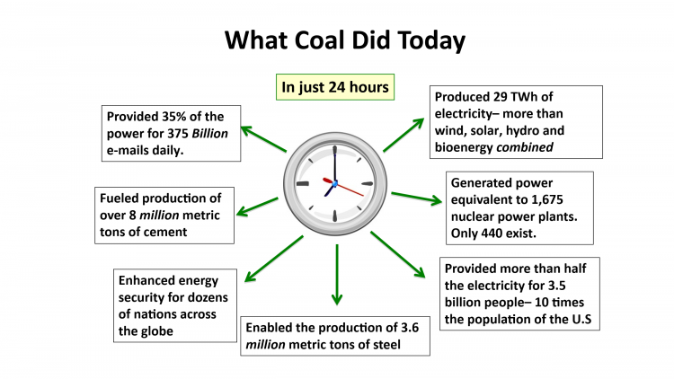 Coal has been the material foundation of industrialization, urbanization, modernization and technological development for more than two centuries. The examples are endless. It was coal that propelled the Industrial Revolution in England that spread throughout the world. It was coal that provided the electrification of virtually every society.