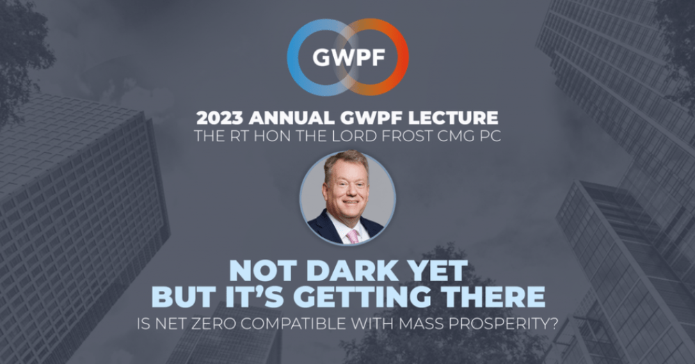 The text of David Frost’s lecture ‘Not Dark Yet’ is available at GWPF