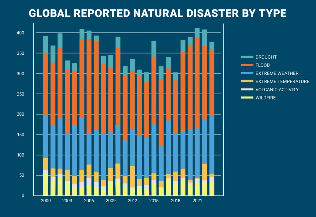 No Increase in Extreme Weather: The number of hydrological, meteorological, and climatological disasters has remained relatively flat since 2000. If climate change were causing more extreme weather events, we would expect to see a clear increase in these numbers. Instead, the data, again, reflects no such increase.