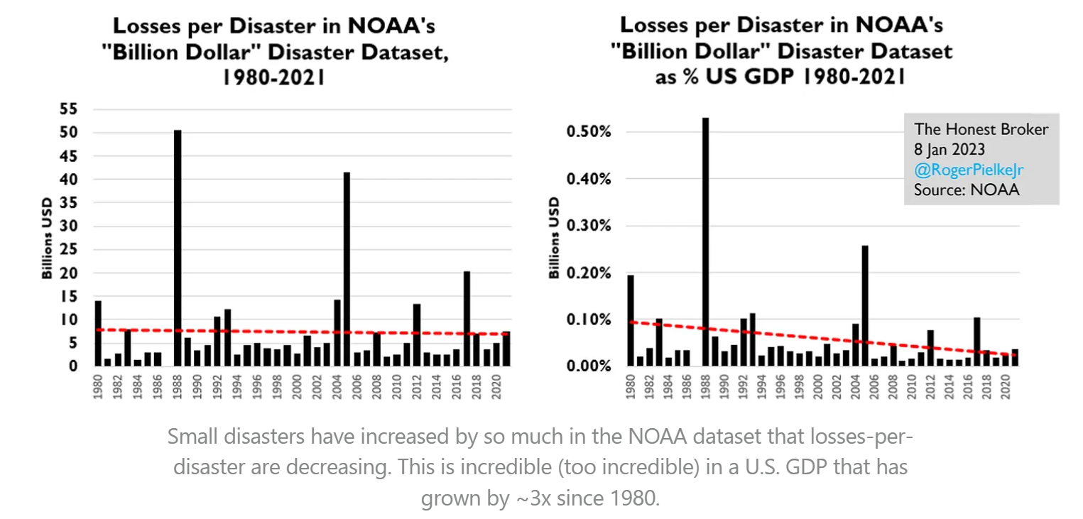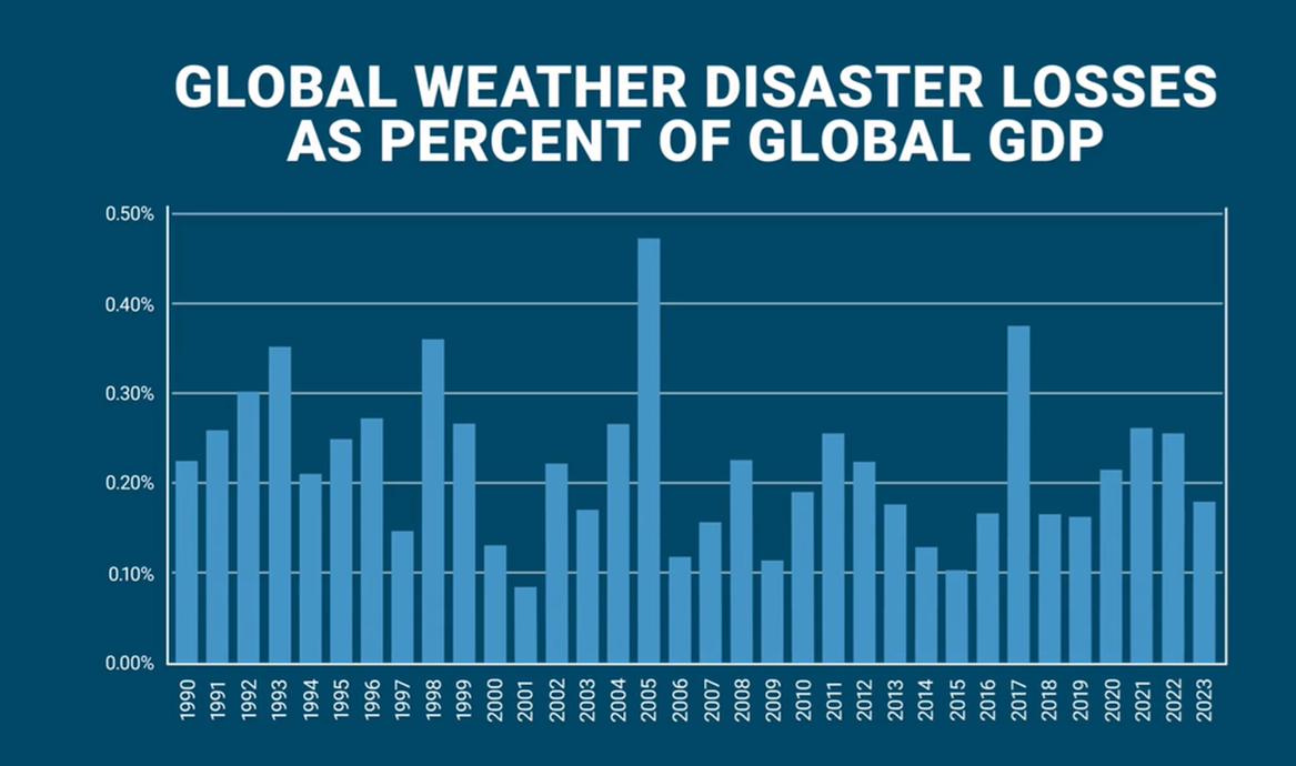 No Increase in Costs: Global weather losses as a percent of global GDP have not risen significantly. This is another crucial metric because it accounts for the economic impact of climate-related disasters. If climate change were truly making these events more severe, we would expect to see a rising trend in economic losses relative to global GDP.