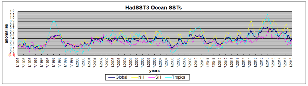 The best context for understanding decadal temperature changes comes from the world’s sea surface temperatures (SST), for several reasons: