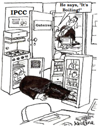 The image is based on a criticism of statisticians: “If my head is in the oven and my feet are in the freezer, my temperature may be on average normal.” UN Chief Guterres presumes to speak for the planet when he claims we are experiencing “Global Boiling.” Apparently, his feet are too numb to register any of the many cold temperatures in places around the world, so he is a victim fearing a runaway average warming. Let’s inform him and others similarly misled about the facts on the ground they are missing.