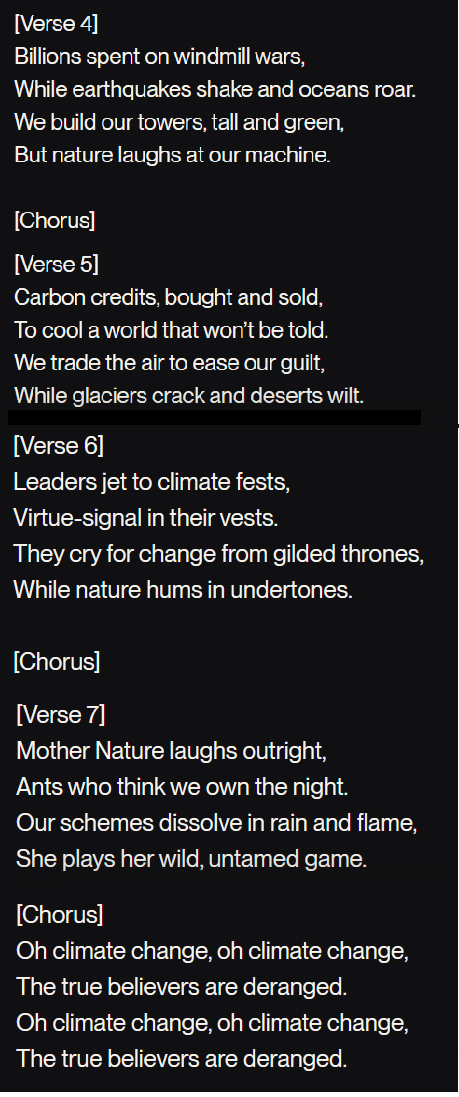 A bit of Thunberg-style climate apocalypse, performed for a select audience — climate profiteers among themselves. The theater now smells of a support group, struggling to maintain mutual rhetoric reinforcement. Of the purported 3.6 billion sufferers, few are likely interested in the climate club unless they are tied to its subsidy mechanism.