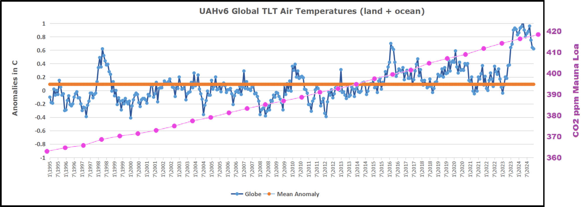 So if the world ocean’s cool, they suck more CO2 out of the atmosphere. And if they warm, more CO2 can come back into the atmosphere. So there’s nothing surprising about that. The only surprise is nobody really knows why the temperature changes, but it’s certainly not CO2 causing it to change because the CO2 follows the change.