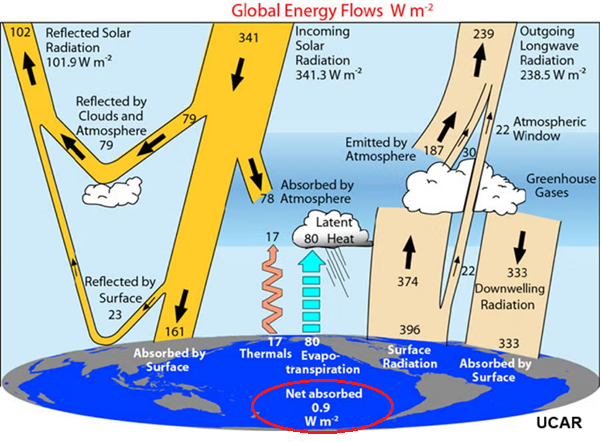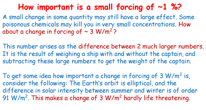 And so the question is, what temperature change will a 1% change of radiation to space cause? You know, that’s radiation flux, not temperature. And the answer is it will cause an even smaller percentage change of temperature. There’s really no threat from increasing carbon dioxide or any of the other more minor greenhouse gases like methane or nitrous oxide or artificial gases like anesthetic gases. It’s all a made-up scare story.
