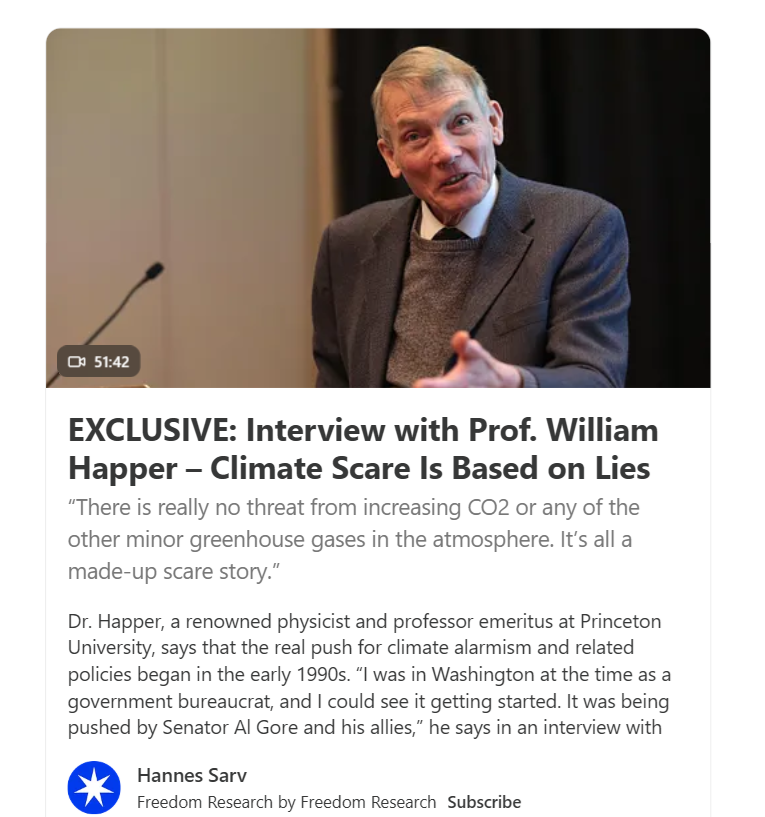 link to video: Prof. William Happer – Climate Scare Is Based on Lies