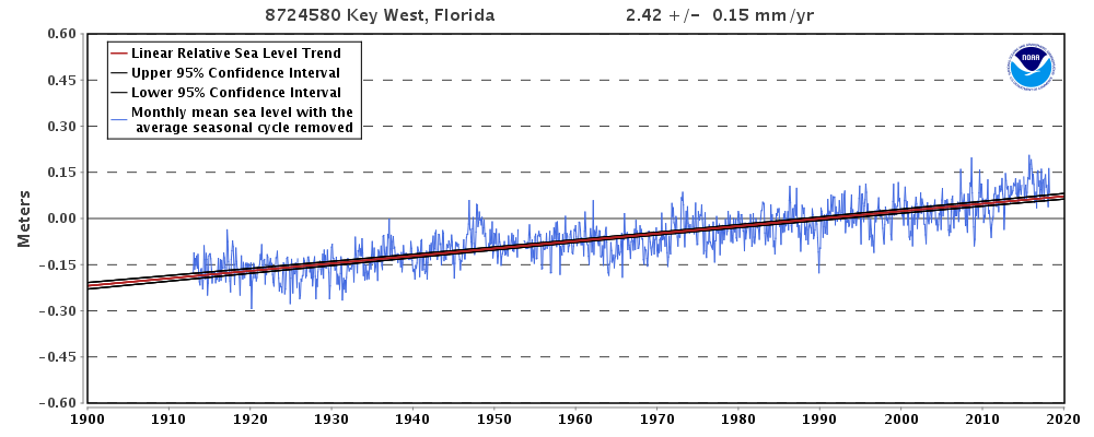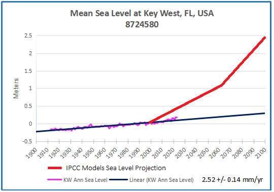 Florida comes in for a lot of attention, especially the keys, so here is Key West: A similar pattern to NYC Battery gauge, and here is the projection: The pattern is established: Instead of a rise of about 30 cm, the models project 250 cm.