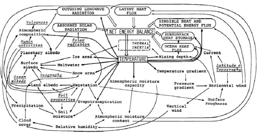 There are two absolutely essential processes in determining climate that are largely unknown. The first is albedo or the amount of sunlight reflected back into space. It’s crucial because it determines the amount of energy the Earth receives. We ignore why it has the value it has, why it varies so little from year to year, why it varies so much from month to month, why both hemispheres have the same albedo and how the albedo has changed in the past.